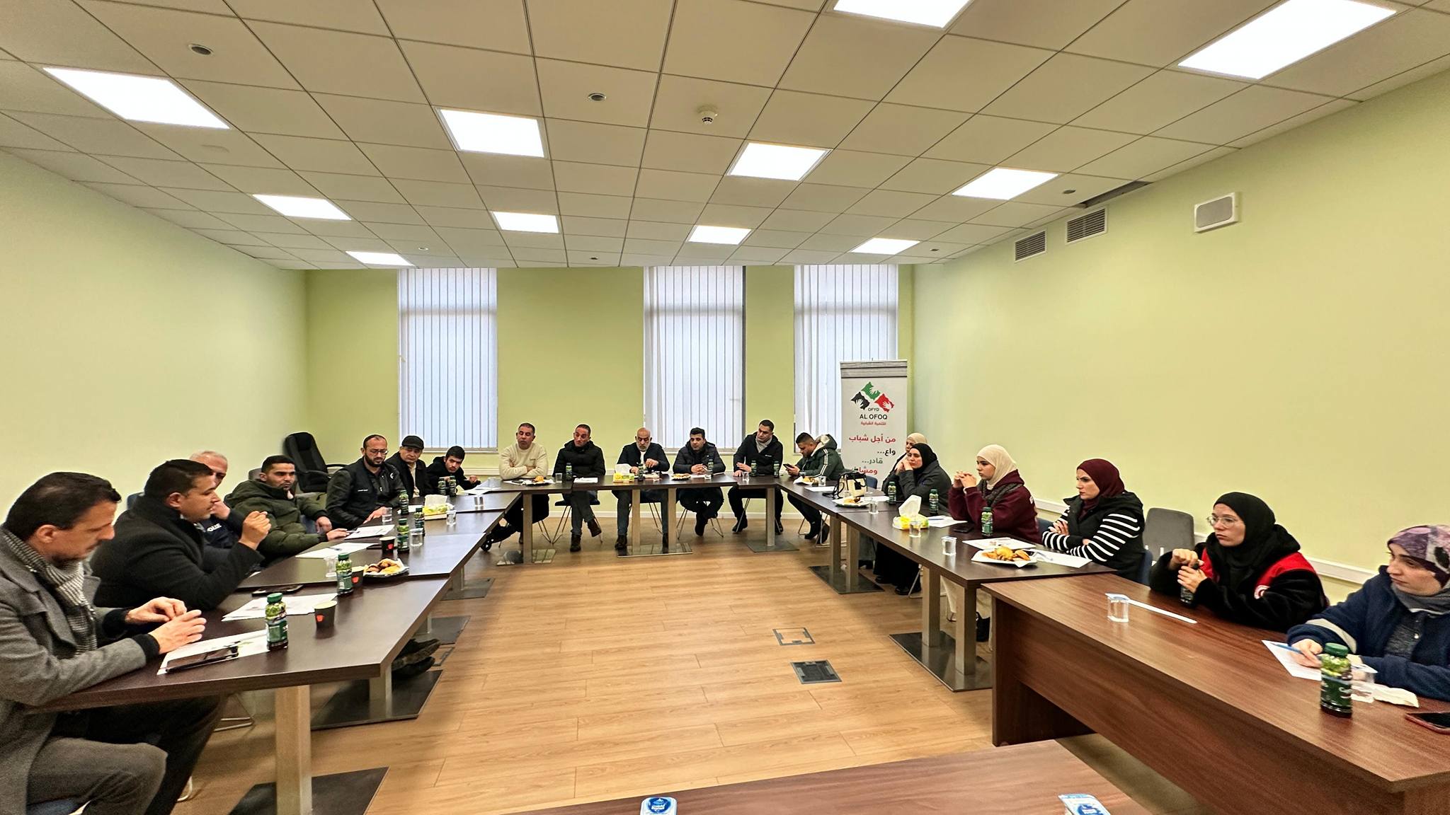 Bethlehem - Al-Ofoq organized a dialogue session on the dangers of addiction to Palestinian society on Sunday, January 18, 2026, with the participation of a number of local community organizations, namely the Supreme Council for Youth and Sports, the Palestinian National Rehabilitation Center, the Anti-Narcotics Police, the Community Research and Knowledge Library, the Phoenix...