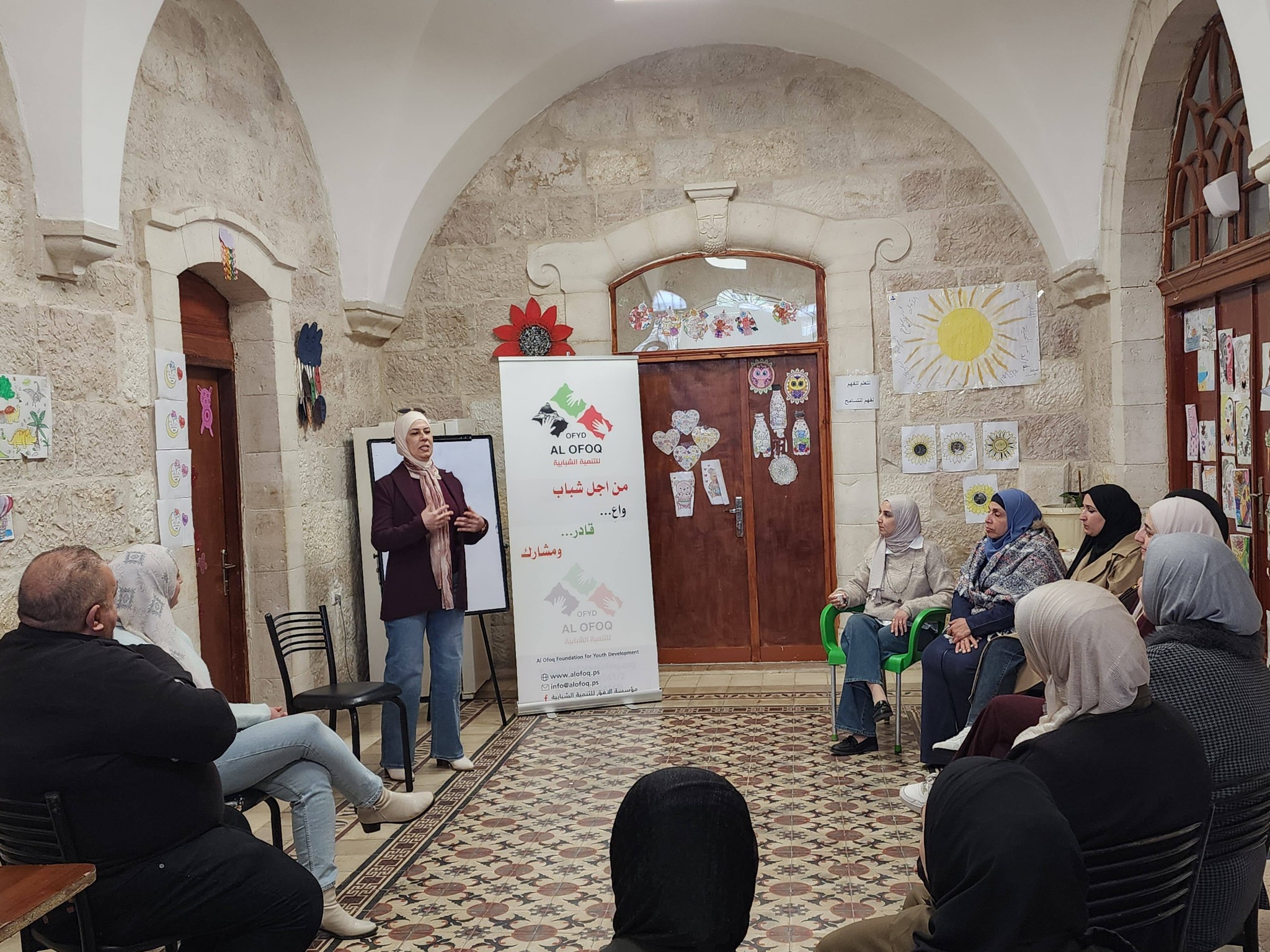 The meeting was supervised by Mr. Ibrahim Suleiman from Al-Ofoq Foundation for Youth Development, while the meeting witnessed great interaction from the participants through activities and applied exercises that focused on stress management skills and working with a positive spirit.